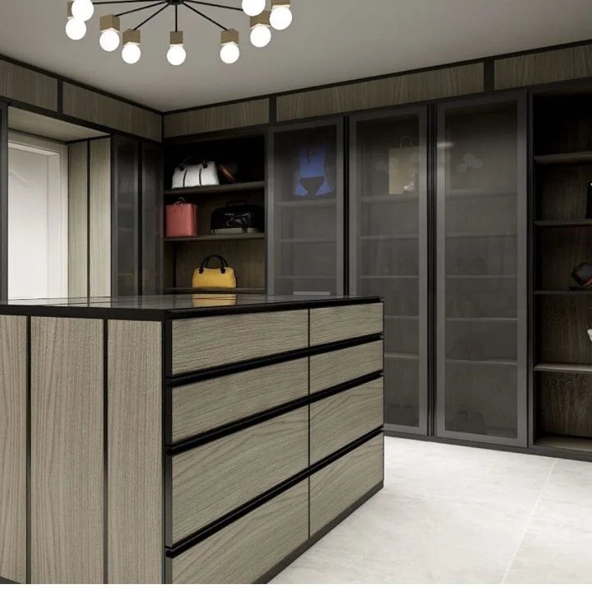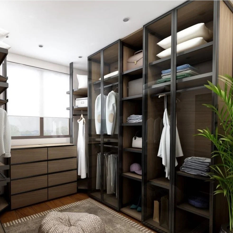 With its simple shape and modern design, aluminum frame glass door can be widely used on wardrobe, kitchen cabinet, TV cabinet, bathroom vanity, wine cabinet, bookcase and so on.