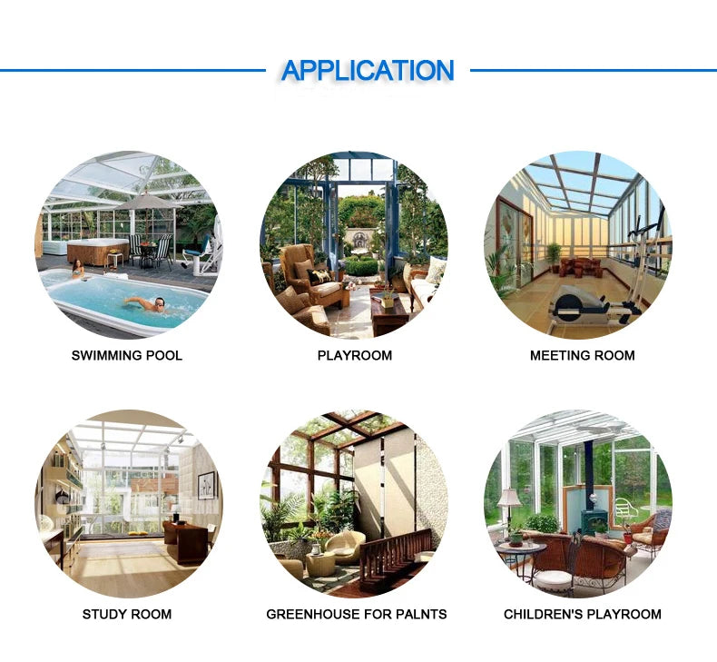 It adopts reinforced structure design to clearify the primary and secondary profile, which improves the strength and safety of the whole sunroom.