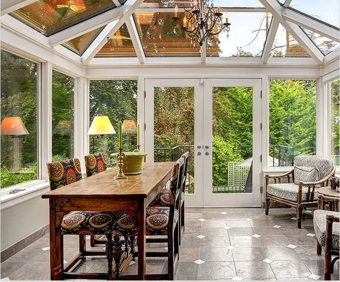 It adopts reinforced structure design to clearify the primary and secondary profile, which improves the strength and safety of the whole sunroom.