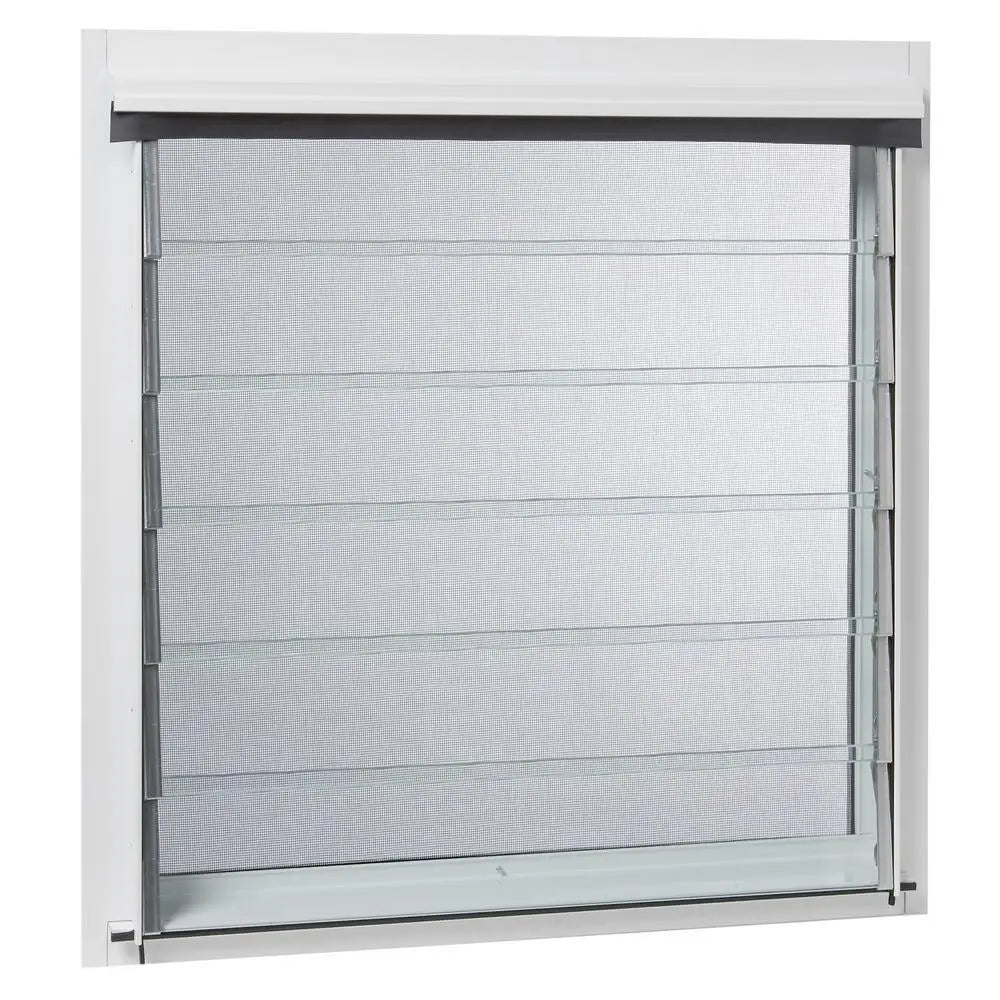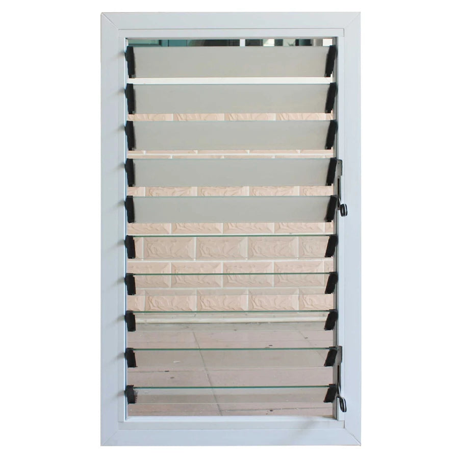 White Louvre Frame Adjustable Glass Blade Mirror Louvre With Security bar and Fly Screen